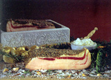 Pattona: Questo pane antico era preparato miscelando anche farina di castagne con quella di mais e grano.Veniva cotto sui testi ben caldi e poi accompagnato da lardo e biroldo, salsiccia. Ingredienti per 4 persone: 500 gr. di farina di castagne, sale, foglie di castagno essiccate, ricotta delle Apuane per accompagnamento. Su una spianatoia di legno setacciate la farina e formate un cratere dove mettete l’acqua salata, impastate con polpastrelli e aggiungete piano piano la farina, formando un impasto omogeneo e non molto denso. Prendete due o tre foglie di castagno ed incrociatele, versatevi al centro due cucchiaiate di impasto coprite con altre foglie di castagno. Seguite sempre questo metodo fino ad esaurimento dell’impasto e mettete a cuocere per circa un’ora nel forno già caldo. Togliete le foglie e servite con ricotta. |